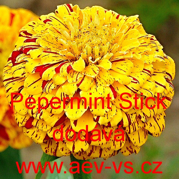 Popis: Ostálka sličná lepá, cínie (Zinnia elegans) Pepermint Sticks je asi 80 centimetrů vysoká jednoletá květina se žíhanými květy.