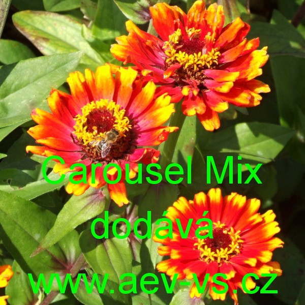 Popis: Ostálka sličná lepá, cínie (Zinnia elegans) Carousel Mix je směs asi 70 centimetrů vysokých jednoletých květin s dvoubarevnými květy.
