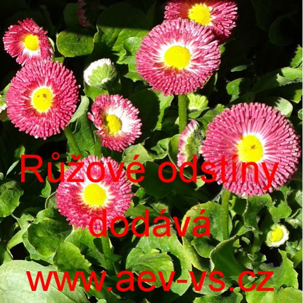 Popis: Sedmikráska obecná (Bellis perennis) monstrosa Růžové odstíny je nízká dvouletka. Vykvétá růžovými jazykokvětými květy, v odstínech. Dvouletky vykvétají od druhého roku růstu. Některé z nich kvetou i několik let. Letní výsevy dvouletek nám umožňují využít záhony i pro jarní pěstování raných zelenin.