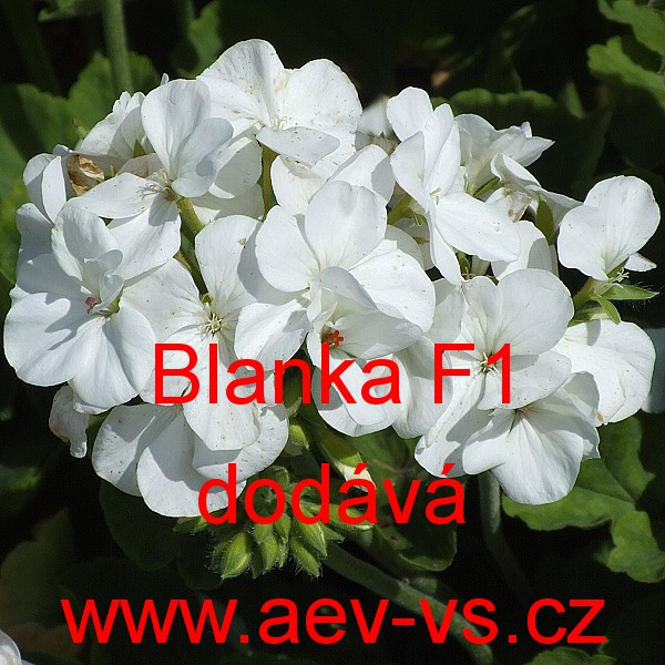 Popis: Muškát páskatý (Pelargonium zonale) Blanka F1 je asi 35 centimetrů vysoká bílá jednoletá květina se zelenými listy. Hodí se na záhon, do truhlíku, květináče a okrasného koryta. Semena se dodávají ve výběrové kvalitě Professional Seeds.