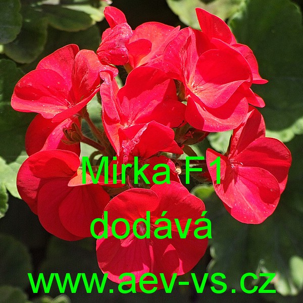 Popis: Muškát páskatý (Pelargonium hortorum) Mirka F1 je asi 35 centimetrů vysoká karmínově červená jednoletá květina se zelenými listy. Hodí se na záhon, do truhlíku, květináče a okrasného koryta. Semena se dodávají ve výběrové kvalitě Professional Seeds.