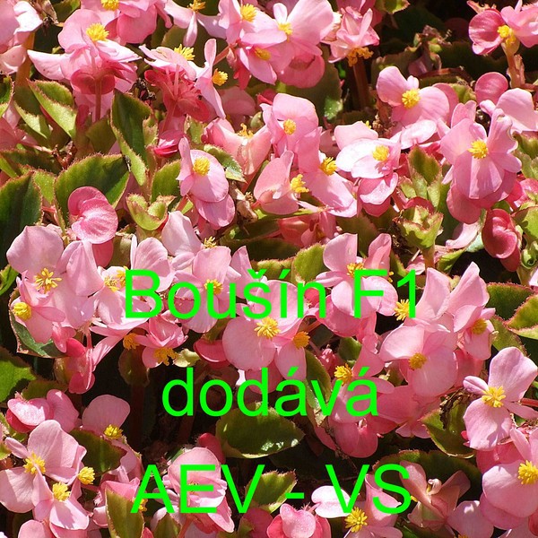 Popis: Kysala stálekvetoucí, ledovka (Begonia semperflorens) Boušín F1 je asi 20 centimetrů vysoká světle růžová zelenolistá jednoletá květina. Hodí se na záhon, do truhlíku, květináče a okrasného koryta.