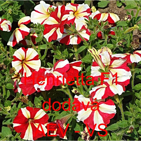 Popis: Petúnie mnohokvětá, zkřížená (Petunia hybrida) Henrietta F1 je asi 35 centimetrů vysoká košatá dvoubarevná červeno/bílá jednoletá květina. Hodí se na záhon, do truhlíku, květináče a okrasného koryta. Semena se dodávají ve výběrové kvalitě Professional Seeds.