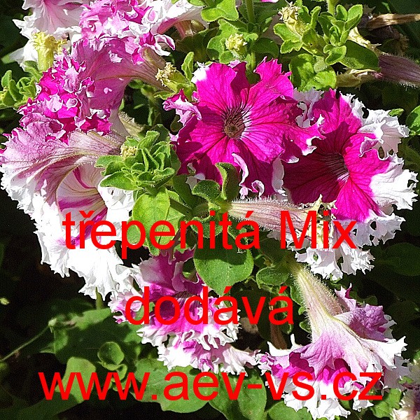 Popis: Petúnie velkokvětá, třepenitá, nízká (Petunia hybrida grandiflora fimbriata nana) Mix je asi 40 centimetrů vysoká velkokvětá směs jednoletých květin s třepenitými okraji květů. Hodí se na záhon, do truhlíku, květináče a okrasného koryta. Semena se dodávají ve výběrové kvalitě Professional Seeds.