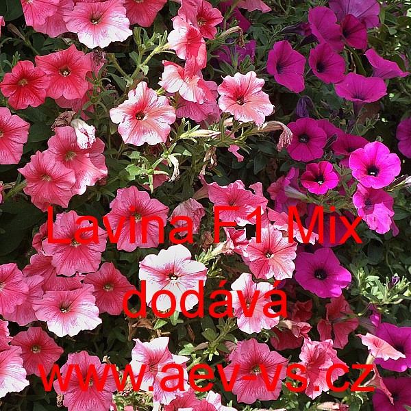 Popis: Petúnie velkokvětá převislá (Petunia hybrida grandiflora pendula) Lavina F1 Mix je asi 35 centimetrů vysoká směs převislých velkokvětých jednoletých květin. Vytváří až 70 centimetrové převisy. Hodí se na záhon, do truhlíku, květináče a okrasného koryta. Semena se dodávají ve výběrové kvalitě Professional Seeds.