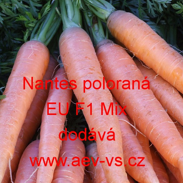Mrkev obecná Nantes poloraná (Daucus carota ssp. Sativus) EU F1 Mix je speciální směs zahraničních hladkých válcovitých poloraných hybridních mrkví obecných.