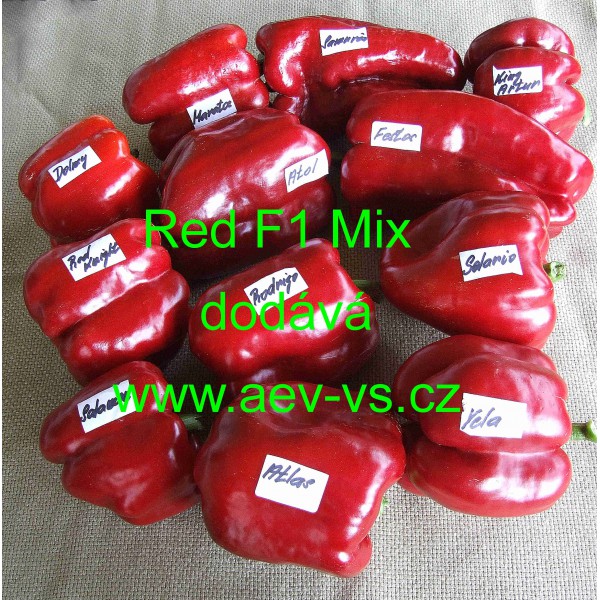 Paprika roční zeleninová (Capsicum annuum L.) EU F1 Red Mix je speciální směs zahraničních červených až tmavě červených silnostěnných hybridních zeleninových paprik ročních do skleníku, fóliovníku i na prosluněný záhon.